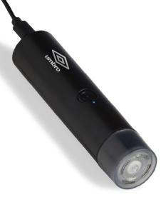 Aparador de Barba elétrico recarregável. Acompanha cabo USB Tipo-C e escovinha para limpeza.
