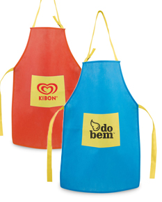 Avental para criança em non-woven (80 g/m²) com bolso e alças ajustáveis. 400 x 600 mm | Bolso: 200 x 150 mm