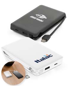 LATTES Bateria portátil em ABS 100 reciclado com cabo integrado e capacidade de 10 00 mAh