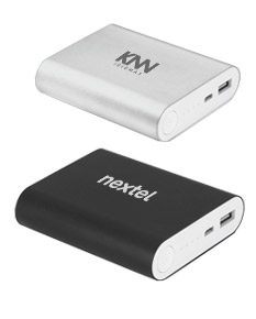 Bateria portátil. Alumínio. Bateria de lítio. Capacidade: 8.000 mAh. Tempo de vida = 500 ciclos. Com entrada/saída 5V/1A. Incluso cabo USB/micro USB para carregar a bateria. Fornecida em caixa presente