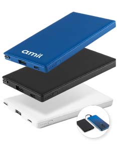 Bateria portátil em ABS 100% reciclado. Tem capacidade de 4.000 mAH e tempo de vida = 500 ciclos. Possui porta de entrada USB-C, porta de saída USB-A e cabo USB-C integrado para carregar os seus dispositivos. Incluso um cabo de carregamento rápido USB-C para carregar a bateria portátil.