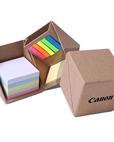 Bloco de anotações cubo com notas autoadesivas. Abre e fecha em diagonal.