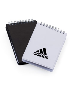 Bloco de anotações de couro sintético com suporte para caneta, frente e verso liso. Abertura superior, possui espiral prata e acompanha aproxidamente 95 folhas brancas sem pauta e suporte na lateral direita para caneta,não acompanha