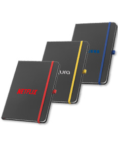 Caderno de anotações com pauta, e com suporte para caneta, capa dura em PU, miolo 80 folhas pautadas na cor bege. NÃO ACOMPANHA CANETA