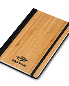 Bloco de anotações, capa de bambu com elástico e miolo com 70 folhas