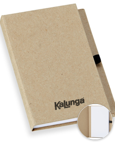 Bloco de anotações capa dura em kraft com porta caneta e wire-o. Contém aproximadamente 100 páginas não pautadas na cor branca.