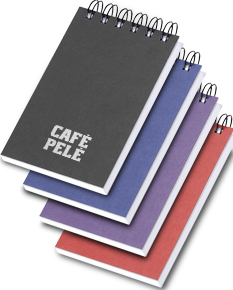 Bloco de anotações capa dura em kraft com wire-o. Contém aproximadamente 100 páginas não pautadas na cor branca.