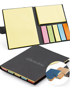 Bloco adesivado, com 7 blocos de 25 folhas cada, capa em cartão resistente e design funcional. Produzido com material de origem sustentável, é uma escolha prática e consciente para ações promocionais e brindes corporativos que valorizam responsabilidade ambiental.