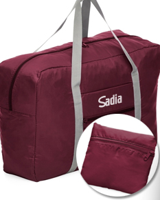 Bolsa de viagem dobrável confeccionada em poliéster e alça para mãos em nylon. Possui bolso principal na parte superior, bolso frontal também utilizado como um estojo para armazenamento do próprio produto e com área para encaixe em malas com puxador. Para guardar a bolsa dentro do estojo, posicione o bolso frontal para baixo, dobre a parte superior e inferior de modo que fique apenas o formato do bolso, faça o mesmo procedimento com as laterais para obter o formato quadrangular por completo. Com o lado do bolso virado para cima, posicione os dedos na parte interna superior e vire como se fosse deixá-lo do avesso, faça o mesmo procedimento com a parte inferior do bolso.