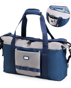 Bolsa esportiva de 18?L feita em poliéster e malha, resistente à água. Ideal para transportar uniformes, calçados e equipamentos, possui dois bolsos internos e dois externos. Conta com alças de mão com fecho em velcro e alça transversal removível e ajustável, oferecendo praticidade no transporte.