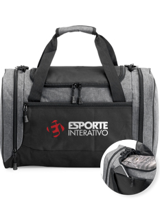 Bolsa de 46 litros confeccionada em nylon resistente à água, com quatro compartimentos, incluindo um bolso lateral com parte telada exclusivo para tênis. Possui alça transversal regulável e removível, além de duas alças de mão.