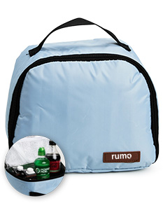 Bolsa térmica em sarja impermeável, com fechamento em zíper e capacidade máxima de 8 litros. Conta com bolso interno em tela de nylon e revestimento térmico em folha de alumínio. Além disso, possui uma pequena placa costurada feita em couro sintético e alça de nylon para transporte.