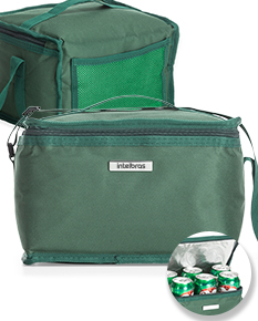 Bolsa térmica 14 Litros confeccionada em nylon, possui parte interna soldada (não vaza), bolso frontal exterior; bolso traseiro exterior; bolsos laterais telados, alça de mão com suporte para junção das alças, e alça transversal ajustável e removível. 24x30x20cm