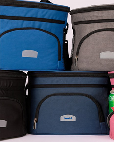 Bolsa térmica confeccionada em poliéster resistente à água e capacidade de até 10 litros. Possui revestimento térmico interno em PVC laminado, dois bolsos laterais em tela, bolso frontal com zíper e plaquinha em PVC, além de duas alças: uma superior fixa e outra transversal removível.