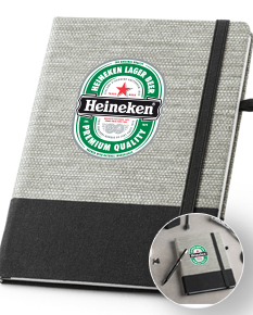 Caderno em couro sintético, com porta esferográfica e 80 folhas não pautadas