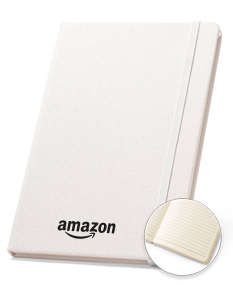 Bloco de anotações em PET reciclado com tratamento antibacteriano, segundo a certificação ISO 20743. Contém 80 folhas pautadas cor marfim, em papel proveniente de gestão florestal sustentável, elástico e fita separadora