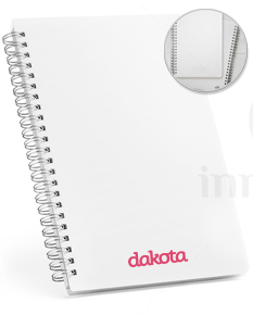 Caderno A5 em PP com tratamento antibacteriano, segundo a certificação ISO22196. Contém 80 folhas pautadas em papel reciclado branco