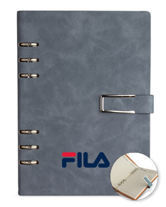 Organize todas as anotações de forma prática com o nosso caderno fichário em PU. Com um design super elegante, ele tem capa dura no formato A5 e um fechamento de fivela imantado que protege as 119 folhas em papel marfim. Os seis anéis permitem retirar e reorganizar as folhas sempre que precisarem, deixando tudo do seu jeito. E para completar, a primeira folha traz um espaço especial para dados pessoais. Esse caderno fichário é a escolha perfeita para manter tudo organizado e com muita sofisticação.