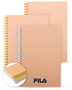 Caderno com capa em kraft com encadernação em espiral de plástico. Possui cerca de 80 folhas com pautas.
