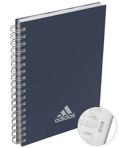 Caderno planner com capa rígida em PU de 2mm em formato espiral. Contém 90 folhas brancas de 95g/m². Folhas estruturadas em formato de planner para anotações e gestão da rotina. Contém folha de dados pessoais, folha com calendários de 2025 à 2028 e espaço para anotações mensais.