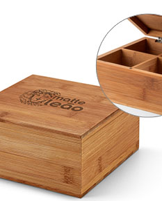 Caixa de chás em bambu, com 4 compartimentos e fecho com ímã.