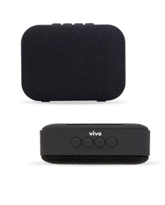 Caixa de som com microfone em ABS. Acabamento em borracha. Com transmissão por bluetooth e leitor de cartões TF. Função para atender chamadas, controle de volume e conexão à playlist do dispositivo móvel. Incluso cabo USB/micro USB para carregar.