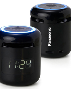 Caixa de som multimídia com relógio despertador. Produzida em plástico e com borrachas antiderrapantes na área inferior, a caixa de som tem bateria de longa duração, display de LED na área frontal, e anel de led brilhante na parte superior. A caixa de som executa nos modos bluetooth, rádio FM, cartão TF-microSD e entrada auxiliar P2. Acompanha cabo USB e manual em inglês e chinês.