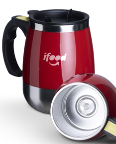 Caneca de inox com misturador de bebida, feita em parede dupla com capacidade de 350ml. Contém tampa plástica com bocal e trava de segurança. Para o funcionamento, utiliza-se duas pilhas AAA (não acompanha).