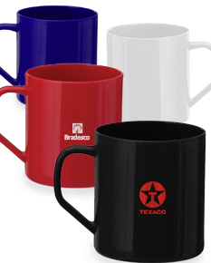 Caneca plástica com capacidade de 400ml.