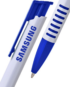 Caneta plástica leitosa inteira colorida. Aciona por clique