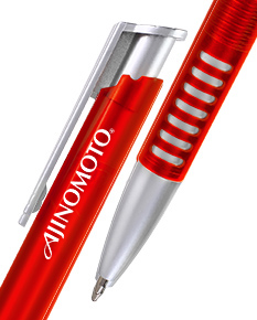 Caneta plástica esferográfica com acionamento por clic.