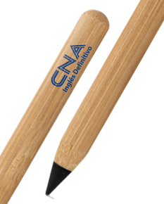 Caneta sem tinta com ponta de liga metálica com grafite e corpo em bambu. Apto para um uso prolongado. Até 2 km de escrita. Não é necessário apontar e a escrita pode ser apagada. Produto amigo do ambiente.