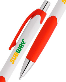 Caneta plástica leitosa inteira colorida. Aciona por clique