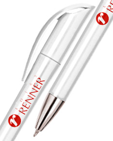 Caneta plástica leitosa inteira colorida. Aciona por clique