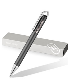 Caneta com mecanismo twist, clipe com mola e cromagem brilhante. Ponteira com cromagem brilhante, corpo com duplo acabamento: interior platinado e exterior laqueado matt. Estojo de cartão: 175 x 41 x 20 mm
