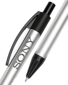 Caneta com corpo metálico, ponteira e clip em plástico. Possui acionamento por clique e carga esferográfica azul de 1.0mm, oferecendo uma escrita suave e precisa com pegada leve e confortável para o uso diário.