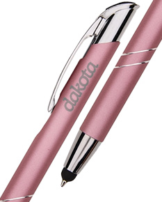 Caneta metálica com clique texturizado e carga azul 1,0 mm, oferecendo escrita suave e confiável. Sua ponta emborrachada permite uso em telas sensíveis ao toque, unindo praticidade e elegância. Um brinde corporativo funcional que destaca sua marca no dia a dia.