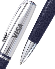 caneta metal brilhante com couro, giro. personalizada