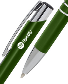 Caneta de metal com acionamento por clique.
