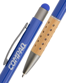 Conforto e fluidez ao seu alcance! Nossa caneta metálica touch é perfeita para os dias repletos de anotações. Possui carga esferográfica na cor azul, acionamento por clique, além de uma ponta touch para utilizá-la em dispositivos eletrônicos sem tocar diretamente na tela, evitando manchas indesejadas, e acabamento em bambu, proporcionando uma experiência de escrita precisa e um toque sustentável.