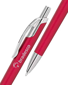 Caneta com corpo em alumínio reciclado, acionador e clipe cromado, com escrita esferográfica azul. Sustentável e elegante, une estilo e funcionalidade, tornando-se um brinde corporativo sofisticado que reforça a presença da sua marca com consciência ambiental.