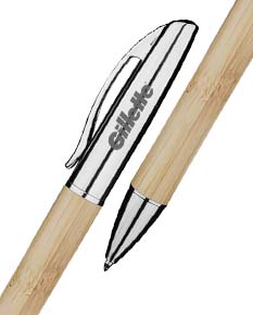 Caneta com corpo em bambu e detalhes em metal, que une sustentabilidade, elegância e resistência. Possui escrita suave, ideal para uso diário, brindes ou ações promocionais. Seu design ecológico transmite cuidado com o meio ambiente, sendo uma excelente opção para valorizar sua marca de forma consciente.