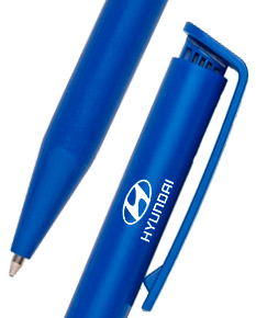 Caneta esferográfica plástica com detalhe texturizado. Aciona por clique.