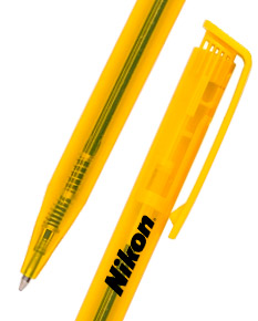 Caneta esferográfica plástica, com corpo translucido e com acionamento por clique,Disponivel também na cor azul fosco