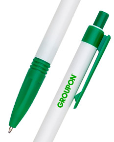 Caneta plástica leitosa inteira colorida. Aciona por clique