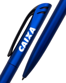 caneta plástica azul c/ rotação personalizada