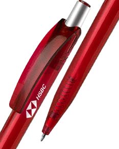 Caneta esferográfica plástica com detalhe texturizado. Aciona por clique.