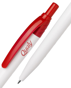 Caneta plástica leitosa inteira colorida. Aciona por clique
