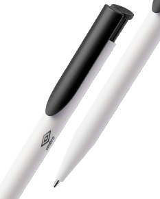Caneta plástica com detalhe em metal. Possui funções esferográfica (com tampa) e ponteira touch.