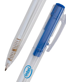Caneta esferográfica plástica, com corpo translucido e com acionamento por clique,Disponivel também na cor azul fosco